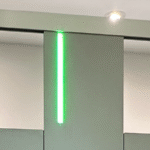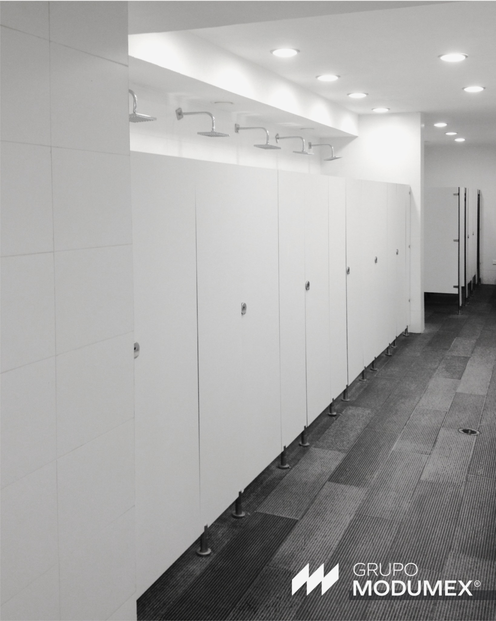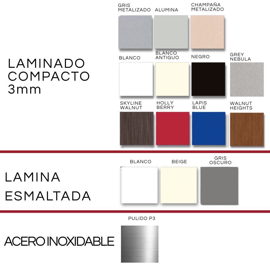 MAMPARA ESTRUCTURADA FABRICADA CON BASTIDOR DE ALUMINIO. ACABADOS EN LÁMINA ESMALTADA ANTIGRAFITI, ACERO INOXIDABLE Y SÓLIDO FENÓLICO
