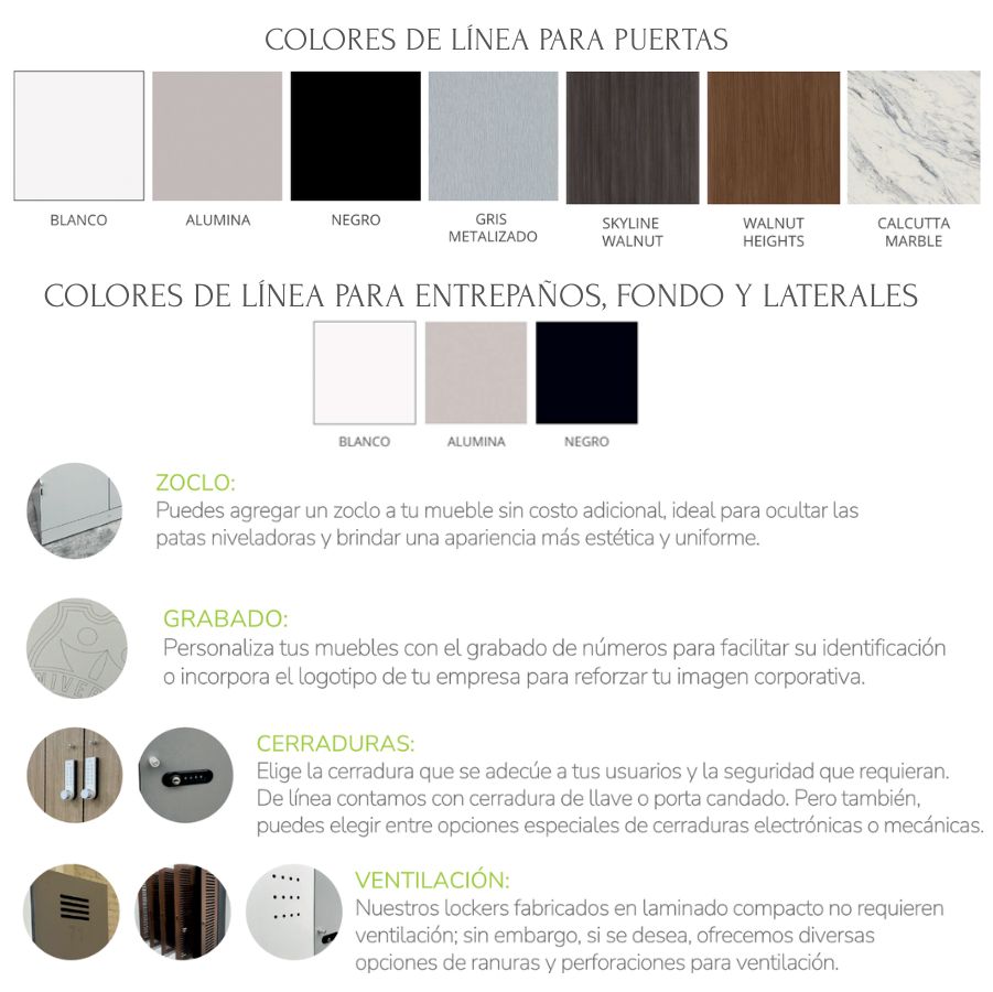 Nuestros casilleros fabricados en laminado compacto son altamente resistentes a la abrasión, grafiti, corrosión. Ideal para lugares de alto tráfico y uso rudo.